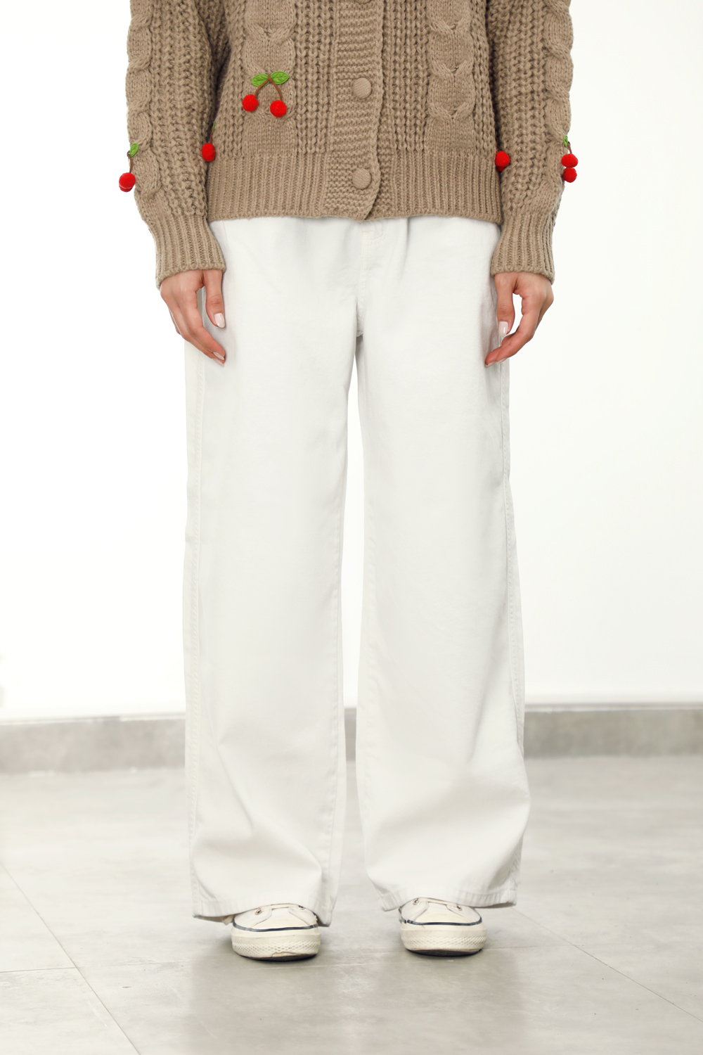 ست با تیشرت ساده، پیراهن آستین بلند یا سویشرت و کتانی یا کفش کالج.
