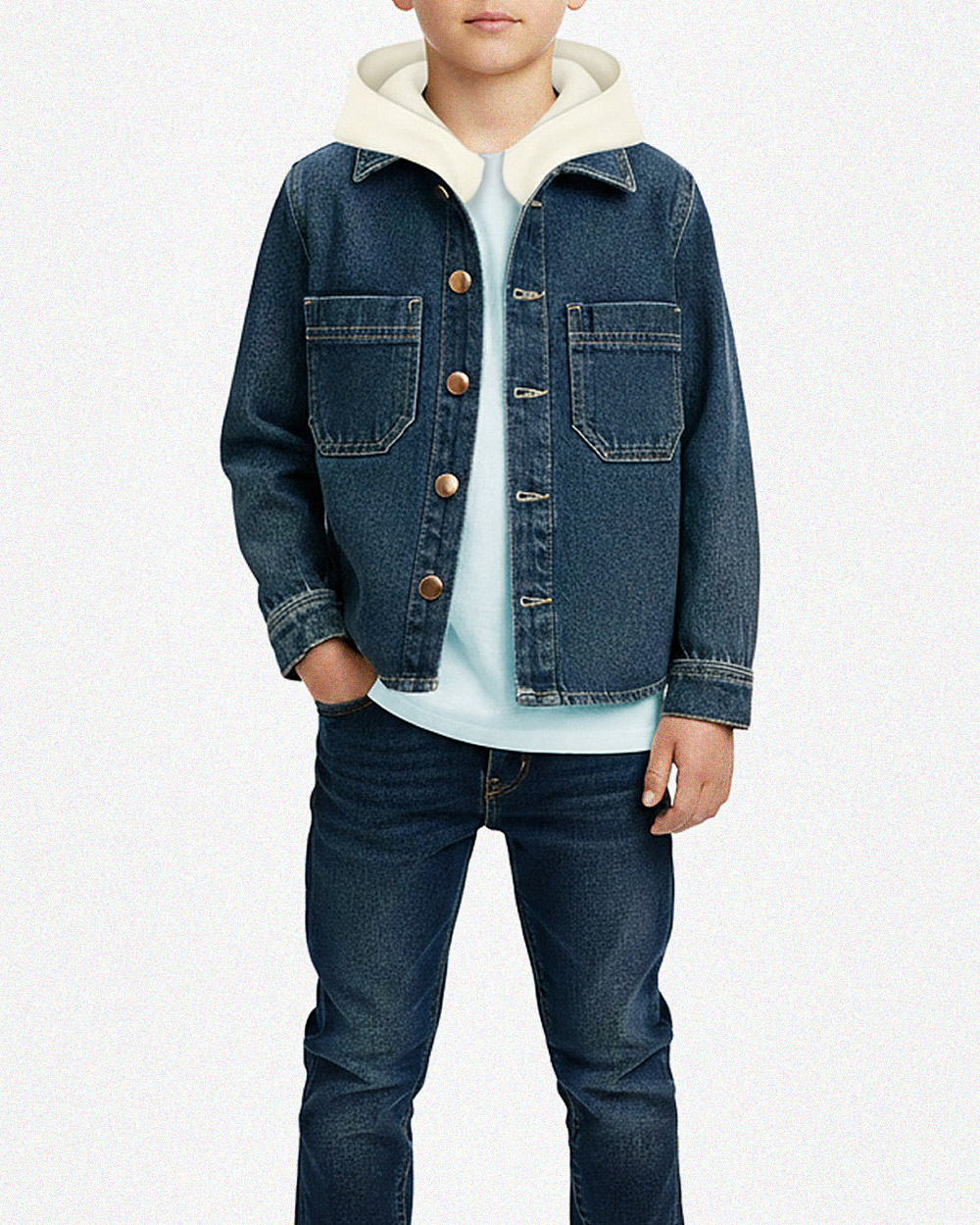 این ژاکت جین کلاه دار با طراحی اسپرت و راحتی بی نظیر،انتخابی ایده آل برای استایل های روز مره و شاد کودکانه است.